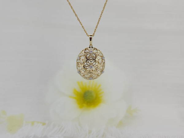 14K Yellow Gold Filigree Natural Mined Diamond Pendant