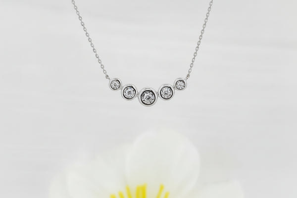 14K White Gold Natural Mined Diamond Curved Bar Necklace